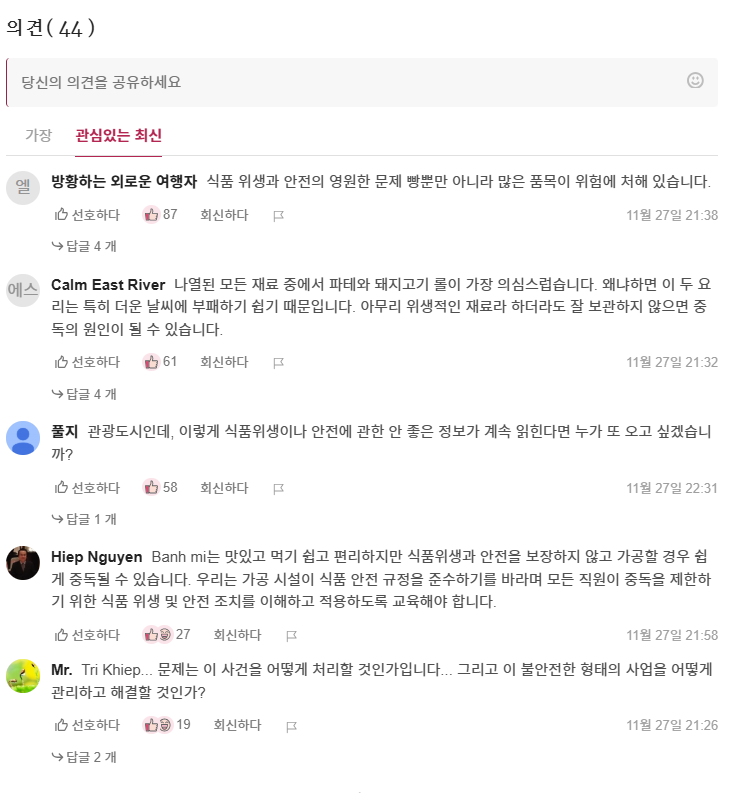 특히 반미 샌드위치의 경우 익혀 먹는 음식이 아니다 보니 식중독에 더 쉽게 노출될 수 있습니다.